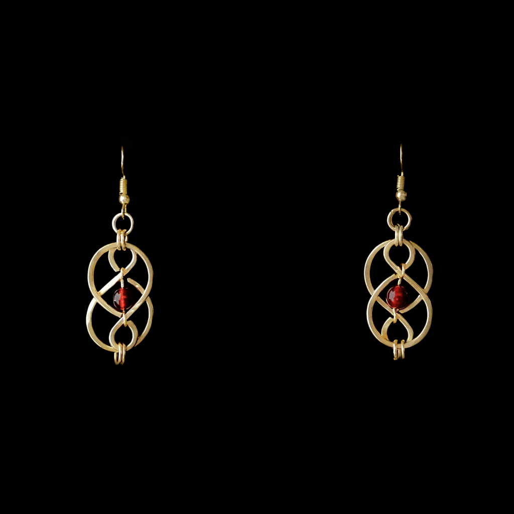Boucles d’oreilles en bronze, alliage Plaqué/Or. Pierre semi-précieuse: Cornaline Longueur: 5 cm