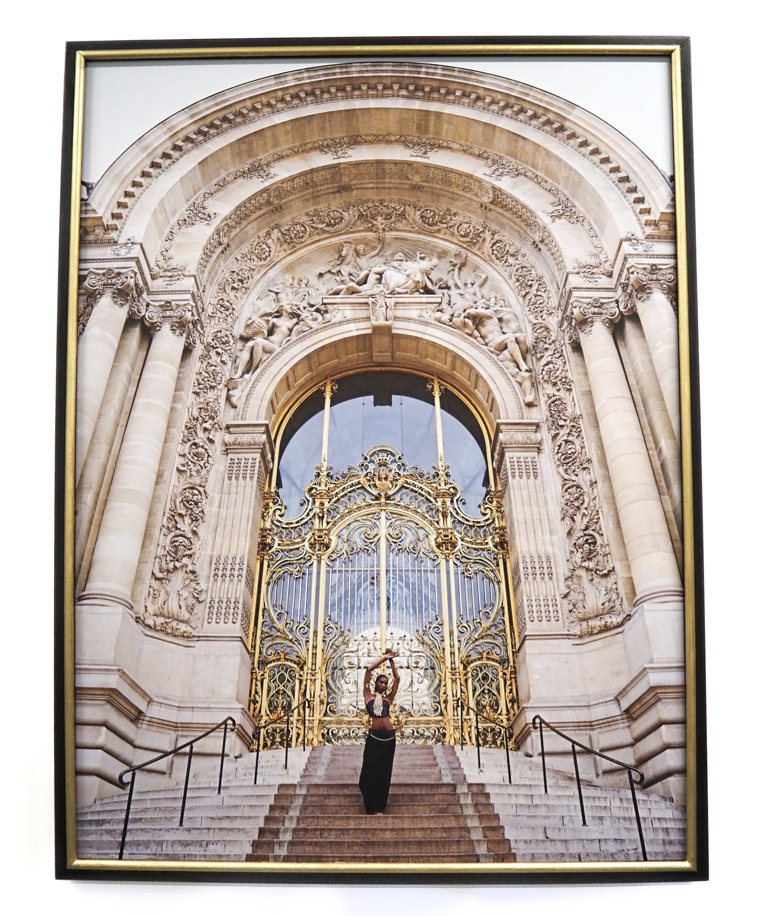 Oeuvre photographique imprimée sur papier contre collé sur support en aluminium. PAPIER Type : Papier d’art Extra Mat (blanc crème) 100% coton Grammage : 310g/m2 Aspect : Mat texturé SUPPORT Type: Dibond Epaisseur : 2 mm Feuille d’alu / Polyéthylène / Feuille d’alu 3 kg/m2 ENCADREMENT Cadre recyclé noire et doré Système d’accroche fourni.