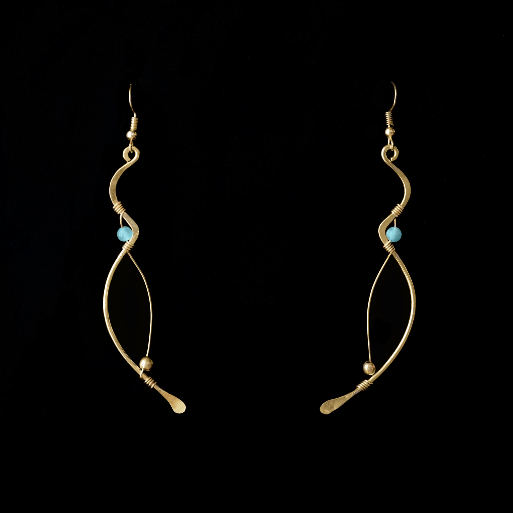 Boucles d’oreilles en bronze, alliage Plaqué/Or. Pierre semi-précieuse: ONIX Longueur: 8 cm