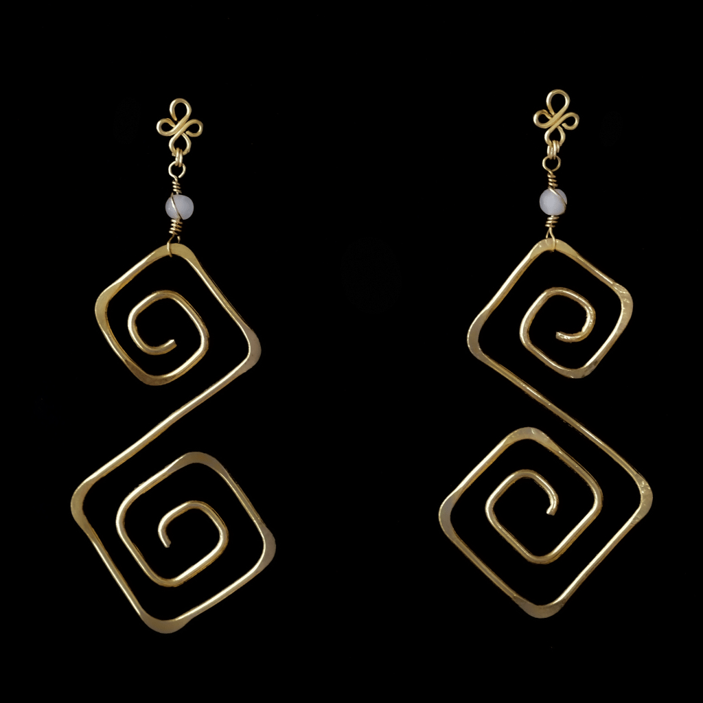 Boucles d’oreilles en bronze, alliage Plaqué/Or. Pierre semi-précieuse: Pierre de lune Longueur: 9,5 cm