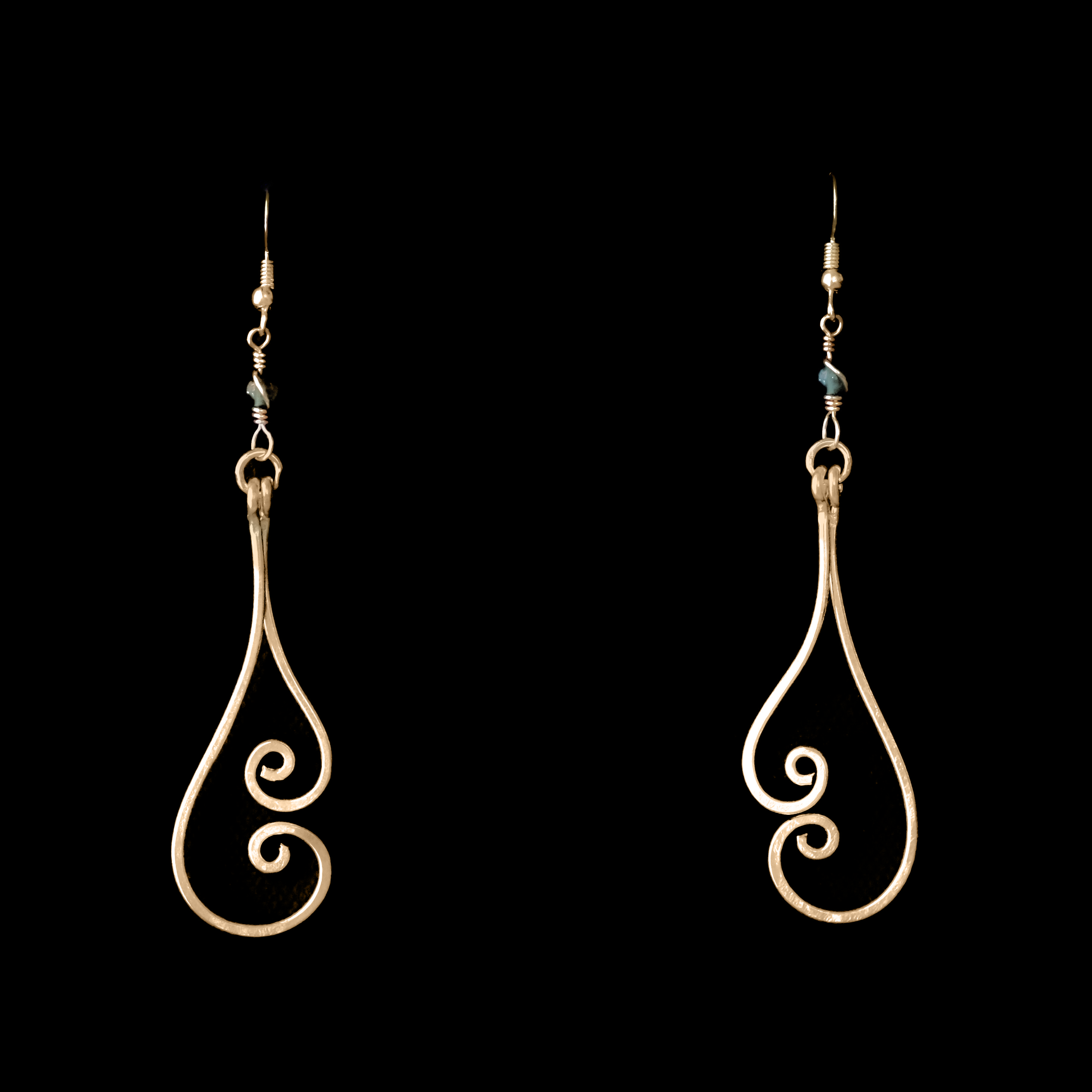 Boucles d’oreilles en bronze, alliage Plaqué/Or. Pierre semi-précieuse: Jade Longueur: 8 cm